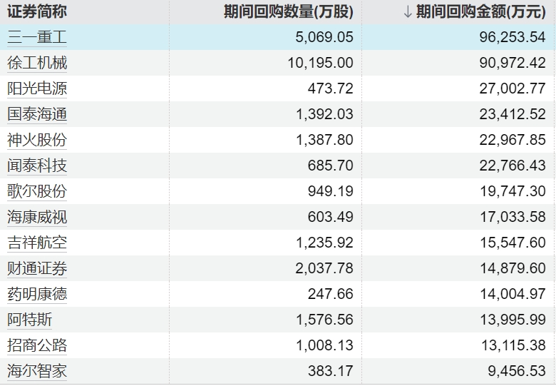 163家上市公司股票获回购配资知名配资门户,三一重工回购金额最高163家上市公司股票获回购,三一重工回购金额最高