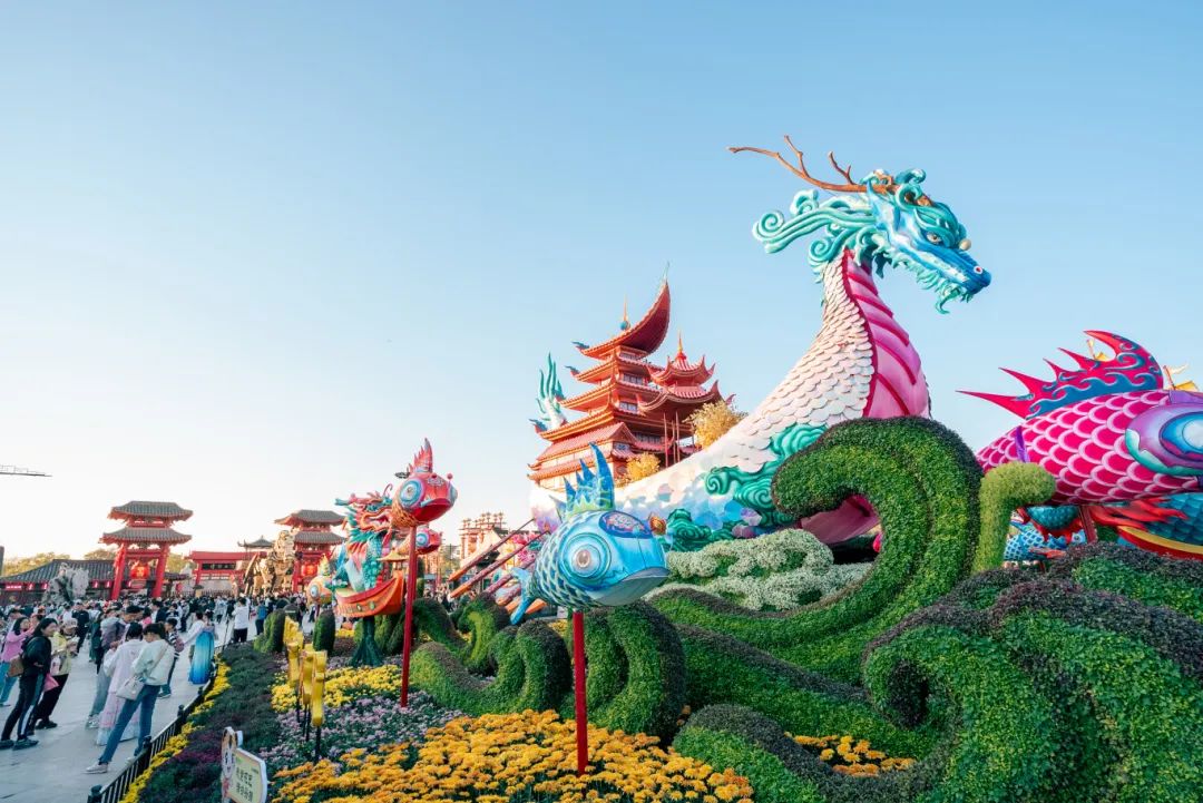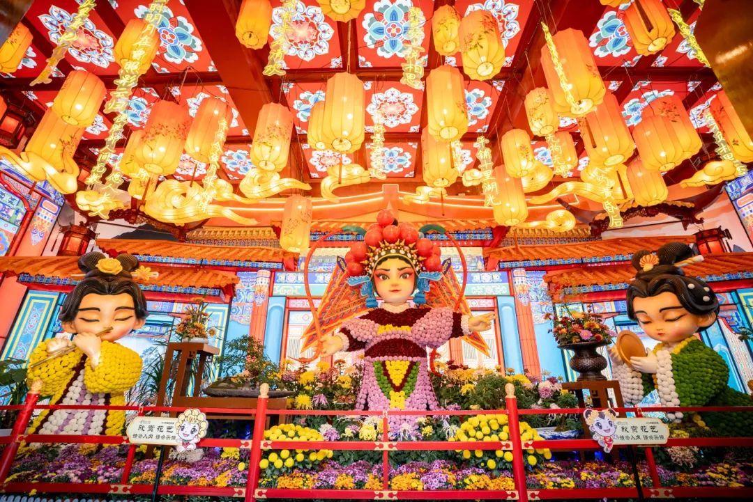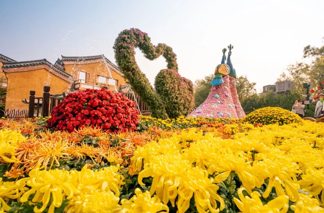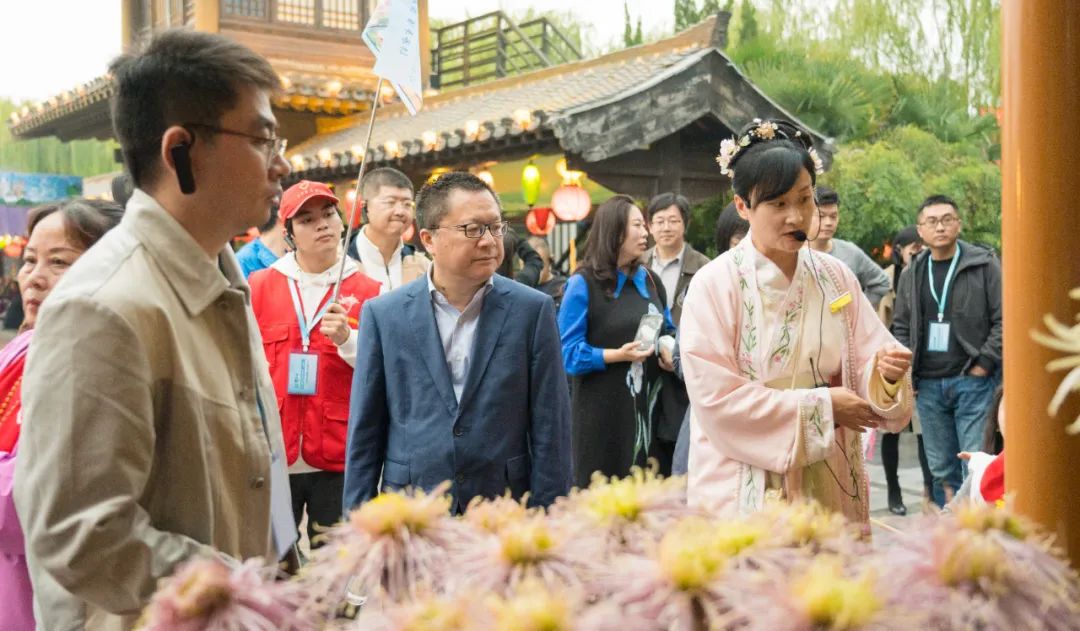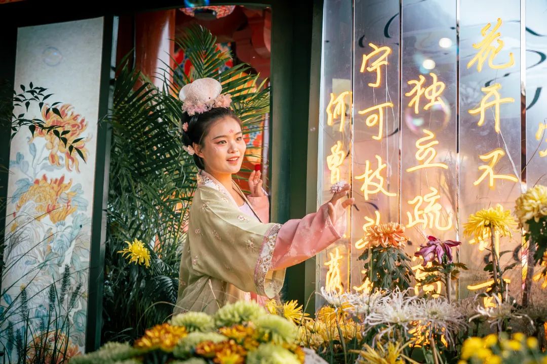第二站,诗人们来到第十三届国际菊花展中。开封清明上河园景区作为开封菊花展主会场、国际菊花展唯一会场,用数百万株精品菊花,国潮风范的菊花造型,新颖独特的菊花园艺,极富美学的菊花意境,打造了一场独具风雅的菊花文化盛宴。而中国诗词在展馆中以新颖独特的布展方式,诗词之美与菊花之美相得益彰。