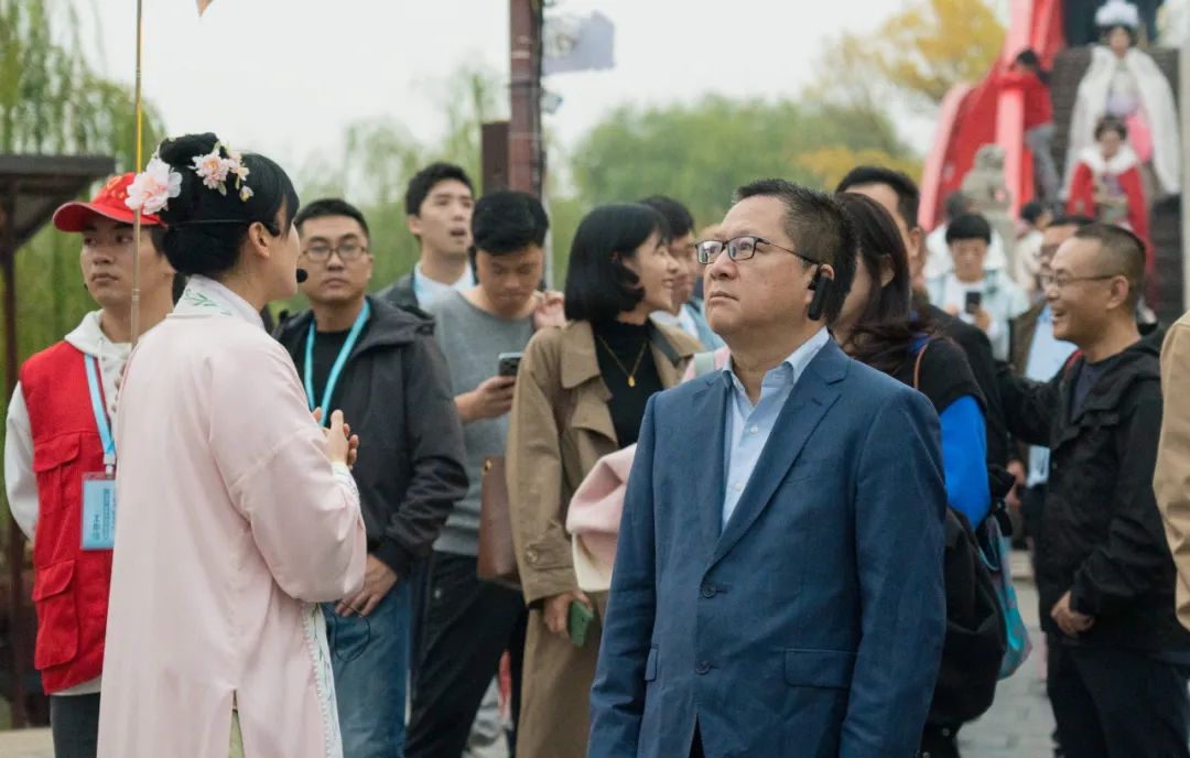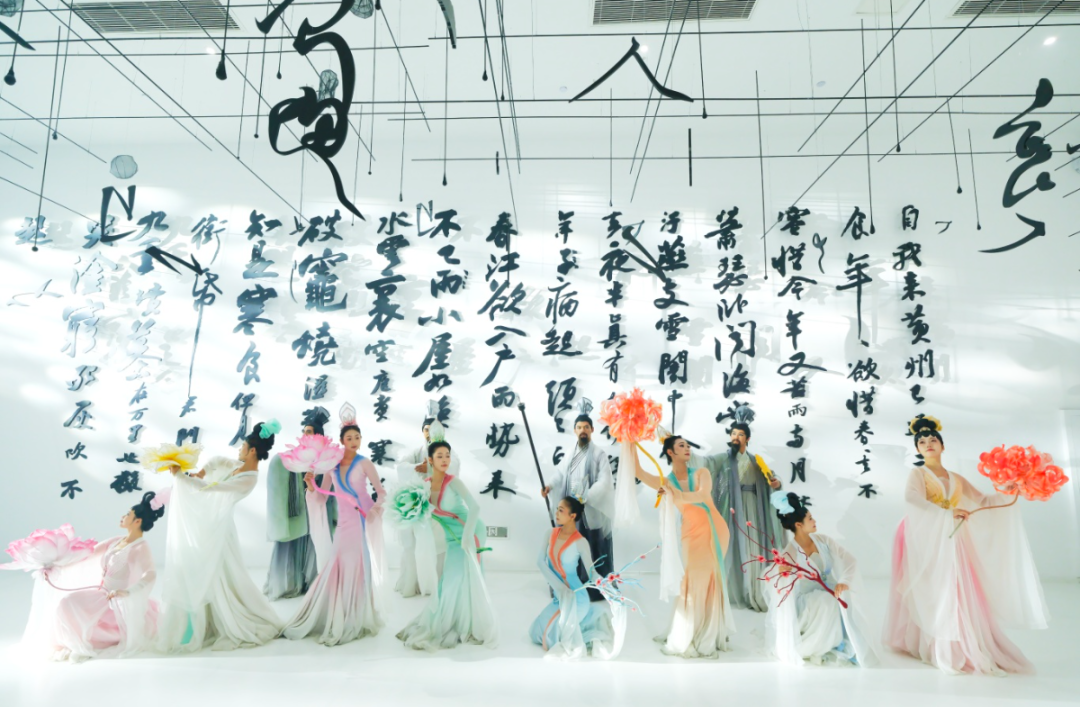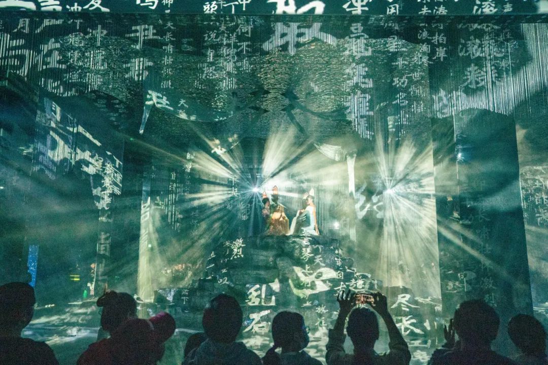 第一站,诗人们来到清明上河园全新打造的全国首个宋文化沉浸式奇幻赏——《爱雅宋》。该项目巧妙运用数字化手段和前沿演艺科技,以宋代风雅美学元素+宋词意境结构,通过实景构建加入虚拟现实技术,打造文旅项目中直击人心的艺术巅峰。AI诗词新创、诗词艺术空间、诗词全息投射、诗人实景演绎......科技赋能文化,以“新质生产力”为诗词再添光彩。